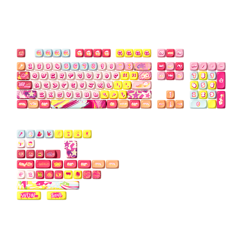 Akko’s Original Rainbow Candy keycap set blends bright rainbow colors, bubble candy fonts, and hip-hop elements for a stylish and youthful look.