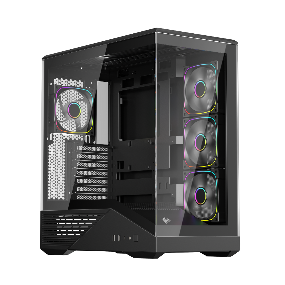 • Extensive Cooling Support: Allows installation of up to 9 x 120 mm fans and supports 360 mm water coolers at the top and 240 mm at the side for superior thermal management.