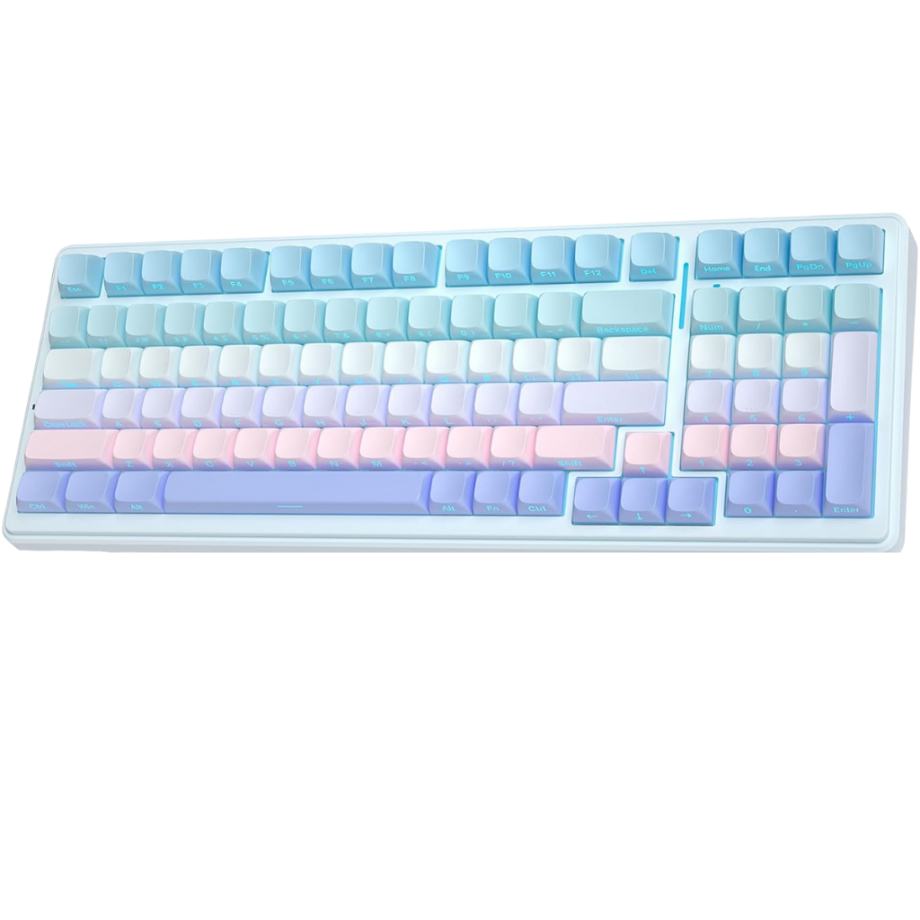 The AULA F99 is a 98% wireless mechanical keyboard with gasket mounting, advanced shock-absorption, and full hot-swappability. Enjoy linear, factory-lubed switches, tri-mode connectivity, and a powerful 8000mAh battery. North-facing RGB, Cherry-profile keycaps, and sleek ABS construction deliver premium typing for gamers and professionals alike.