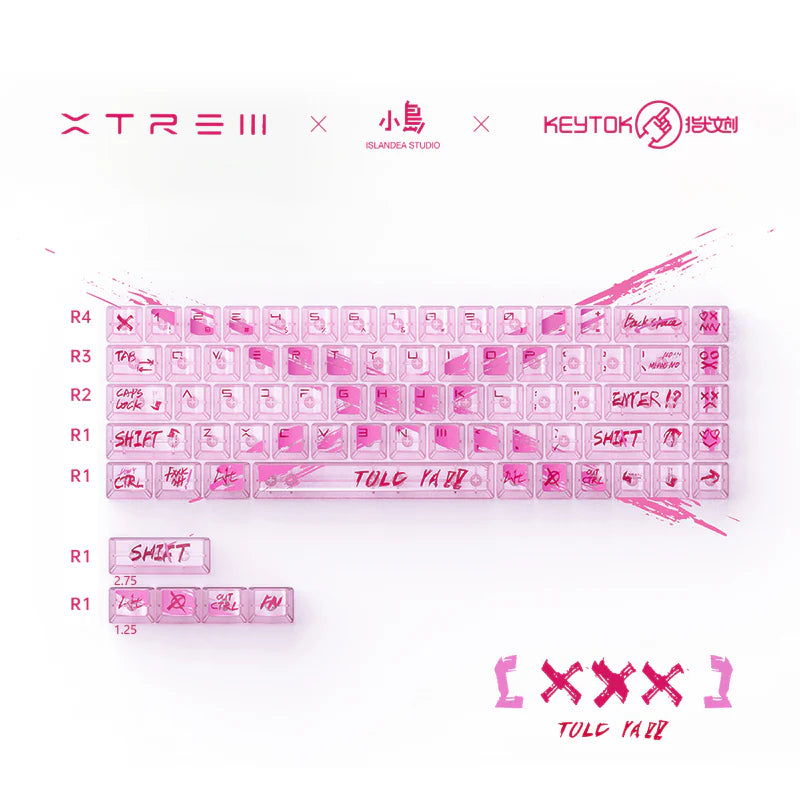 - 73-key set compatible with 60-key, 61-key, and 68-key layouts