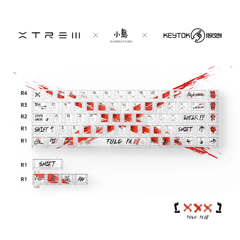 - 73-key set compatible with 60-key, 61-key, and 68-key layouts
