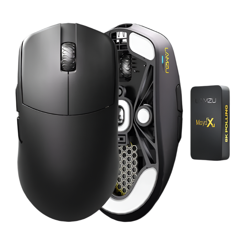 Lamzu Maya X – Lightweight (47g±2g) gaming mouse with Pixart 3950 sensor up to 30,000 DPI and 8K polling rate. Features wireless/wired dual connectivity, premium Omron switches, and multiple color options for your setup.