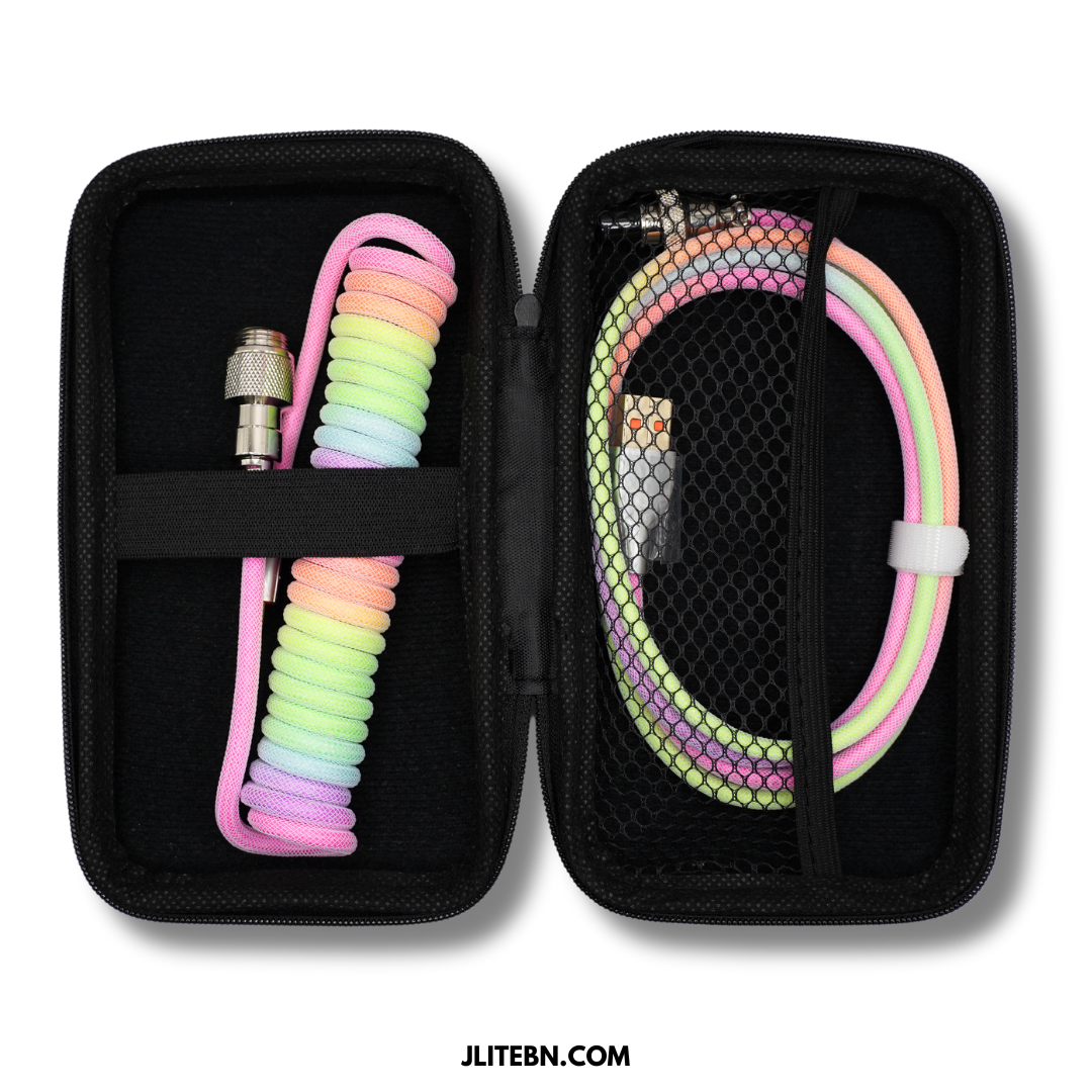 Stylish and durable coiled Type-C cable designed for keyboard enthusiasts. Offers tangle-free flexibility, reliable fast data transmission, and a perfect length to keep your desk tidy. Available in multiple colors and includes a carrying case for easy storage and portability.