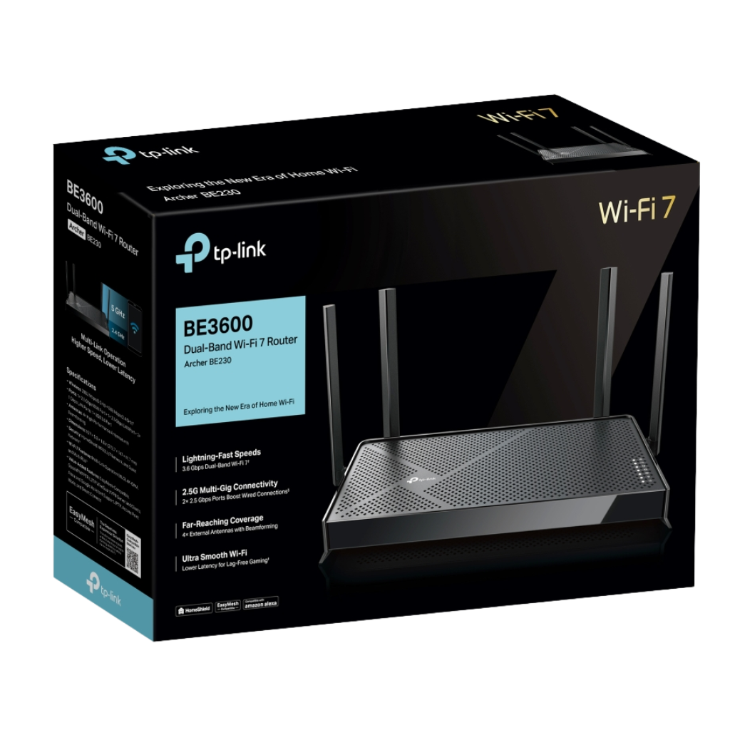 Blazing-fast Wi-Fi 7 speeds up to 3.6 Gbps with dual-band coverage. Features 2×2.5G ports, 4 external antennas with Beamforming, and EasyMesh support for seamless home connectivity. Includes TP-Link HomeShield for advanced security and easy setup via the Tether app. Compatible with all devices and ISPs.