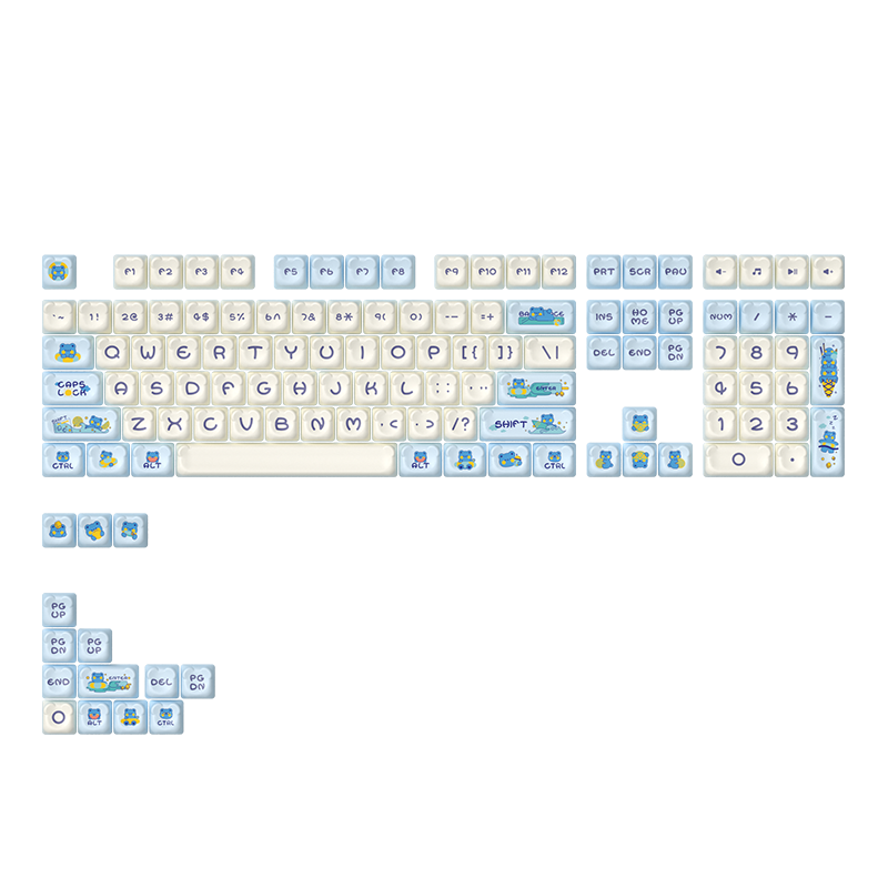 Bear-shaped OEM profile keycaps made from durable PBT. Features Dye-Sub design keys and Double-Shot alpha/function keys for long-lasting legends. A playful yet high-quality upgrade for your keyboard.