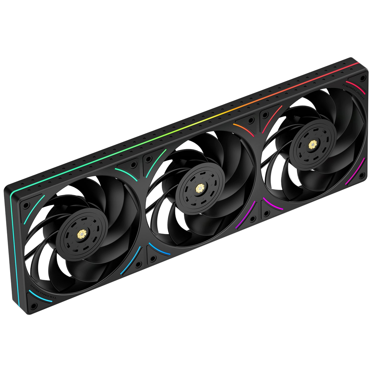 The TL-UB36R is a powerful 360mm radiator fan, boasting a rated speed of 2150 RPM, a maximum airflow of 69x3 CFM, and an air pressure of 2.87 mm H2O. Featuring an S-FDB V2 bearing for durability, 4-PIN PWM control for precise speed adjustment, and 3-PIN 5V ARGB lighting, it provides exceptional cooling performance and customizable aesthetics for high-end PC builds.
